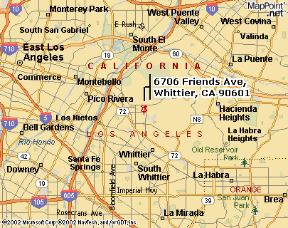 (Use Your Browsers Print Function To Print This Page) The Annual Louisiana Brigade Dance is set for this date. On March 29, 2003 (1863 plus 140 years) Taylor's-Hays' Louisiana Brigade will hold its 5th Spring Cotillion. The event will be held at the DeSoto Parish Ladies Aid Society Building (AKA Red Cross Building - 6706 South Friends Avenue, Whittier, Ca. [See maps below for directions]). This will be a formal Cotillion, with period dress (either civilian or military) required. The Cotillion will utilize the musical talents of the Cottonwood Strings, along with the dance calling of Thomas Atkins, 1st Sergeant, Company E, 8th Louisiana. Based on information from the Red Cross, we will have to raise the price per person this year. The Red Cross has raised their prices to us 400%. Here is the pricing for the Cotillion: AT THE DOOR - $15.00 for Adults &$10.00 for Children. DISCOUNT PRICE BEFORE MARCH 17th - $10.00 for Adults & $5.00 for Children. As always, attendees are requested to bring light snacks (i.e., cookies, fruits, vegetables, etc.) for the mid-dance break. Libations (i.e., coffee, lemonade, water, etc.) will be provided by the Brigade. Any checks received after March 17th will have to pay the full price. Reservations and monies should be sent to Mark Schoenberger (11908 Tigrina Ave. Whittier, Ca. 90604 )